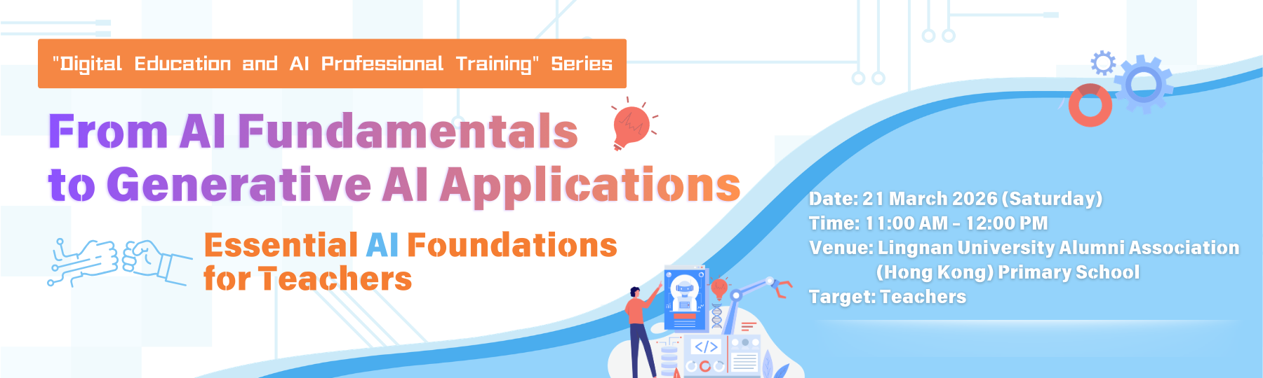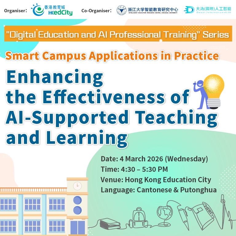 In the context of rapid developments in artificial intelligence, many teachers are increasingly concerned about its impact on teaching and learning. Hong Kong Education City will host the seminar “From AI Fundamentals to Generative AI Applications: Essential AI Foundations for Teachers”, aimed at supporting educators in understanding the role of AI as a digital teaching assistant and integrating it into daily classroom practices without increasing workload, thereby enhancing overall teaching and learning effectiveness.