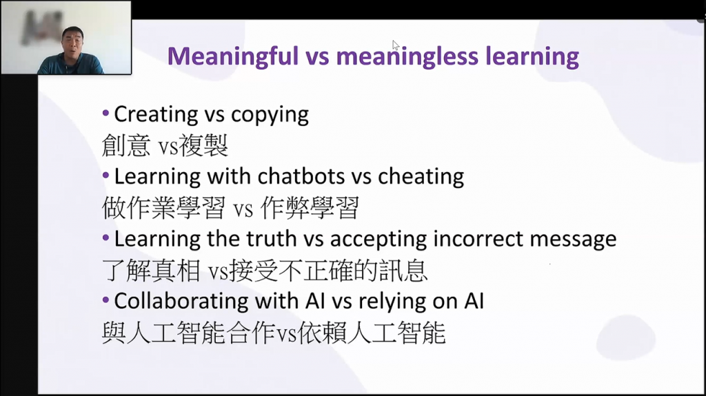 (Professor Chiu explained the difference between using AI tools in a 'meaningful way and an 'unmeaningful' way.)
