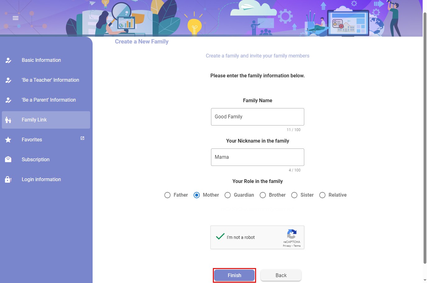 2. Enter the family group information (family group name and your information).
