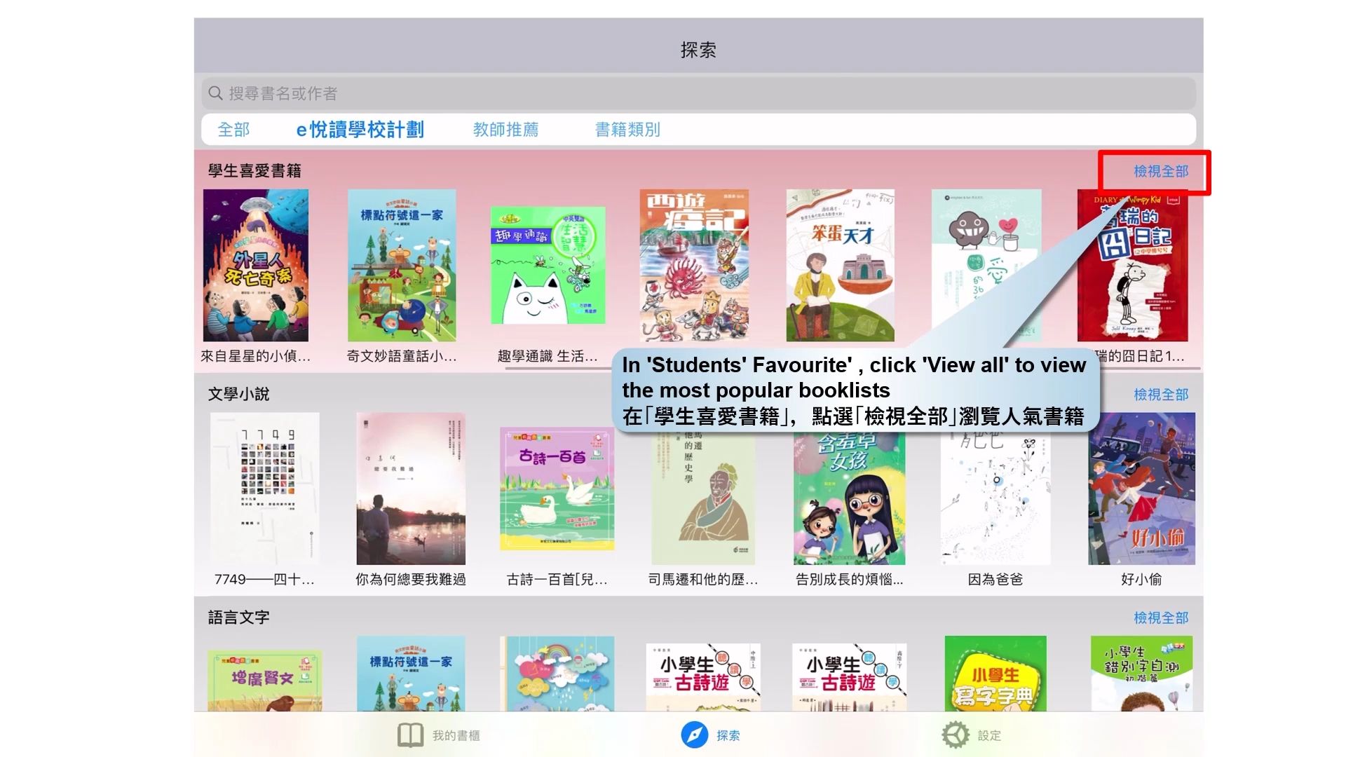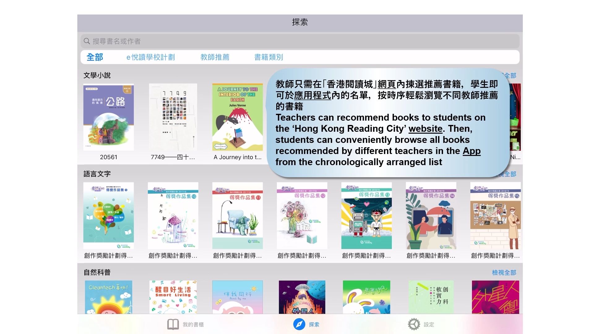 「e悦读学校计划」提供以校本电子书订阅服务,协助教师挑选优质中、英文电子书籍以推动广泛阅读。学校订购服务后,可以根据校本的需求选择合适的电子书组合,在课堂教学和课外阅读中灵活使用电子书内容,提升整体教学效果。