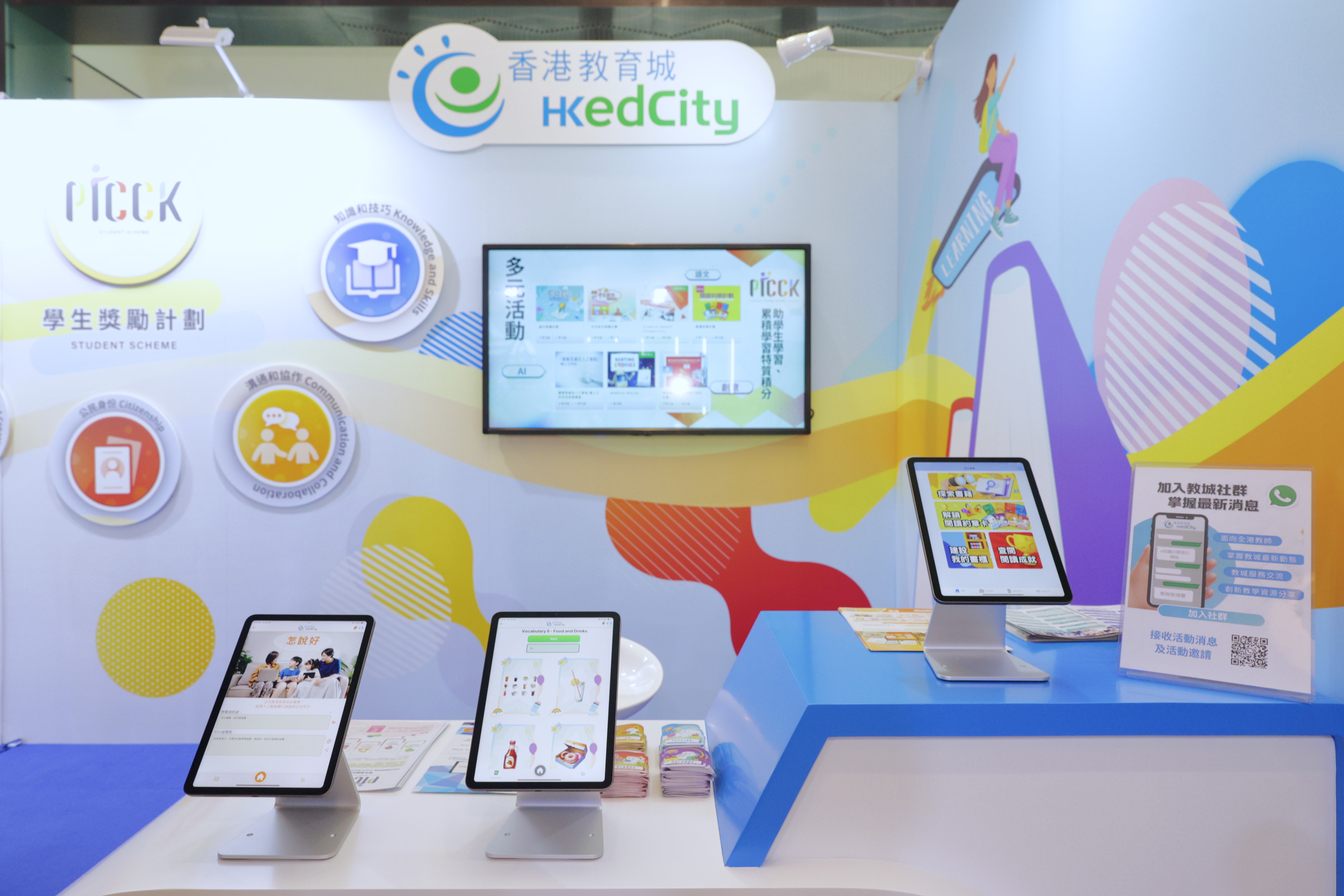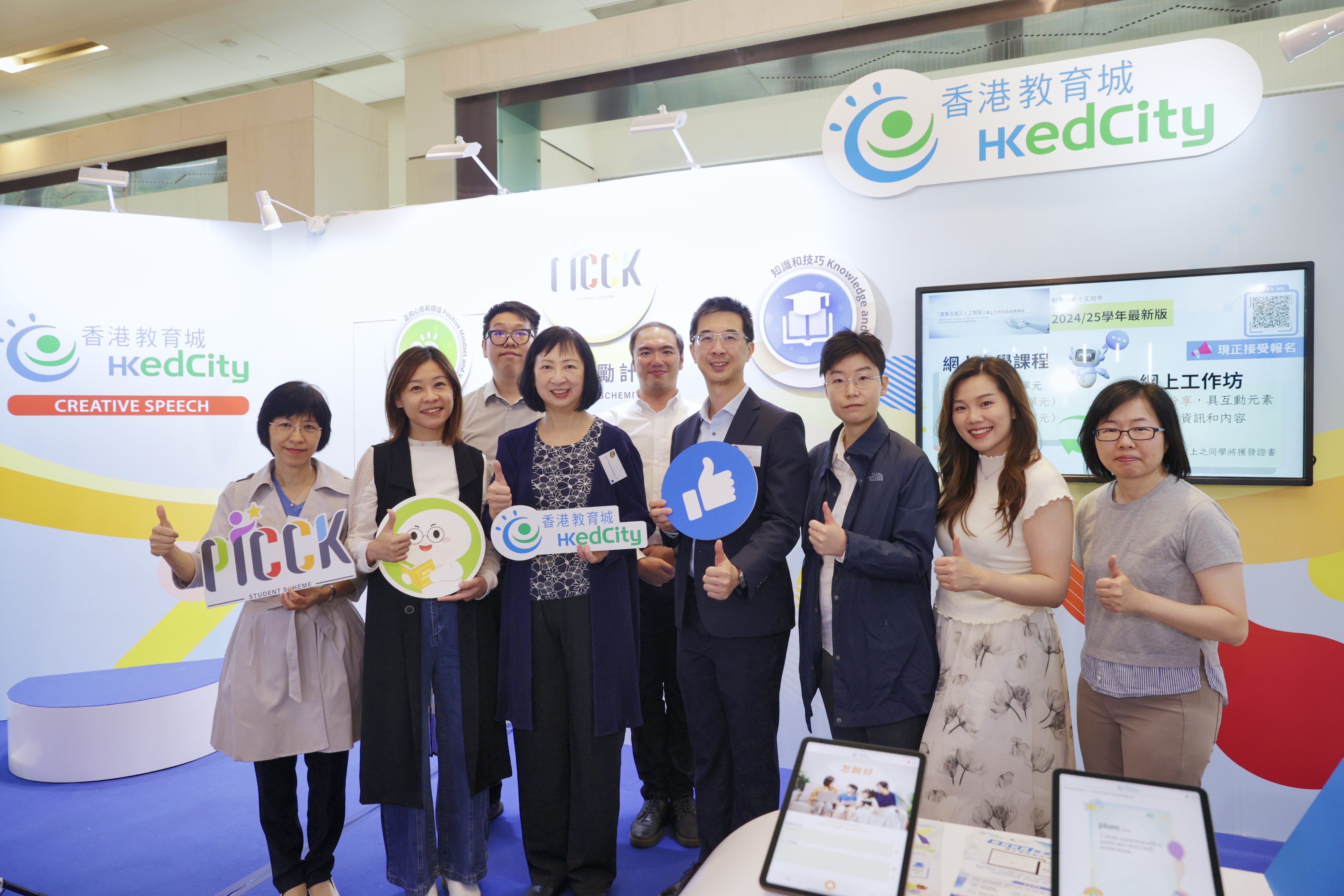 教城参与了由创新科技署主办的「创新科技嘉年华2024」,由10月26日至11月3日于科学园设立展位,让家长和学生即场体验最新推出的「教城家长」和「教城学生」应用程式,学生更可以了解最新的学生奖励计划(PICCK),以五大学习特质培养21世纪技能。展位更设有创意演讲体验室,让学生踏上台板一尝英语演讲的滋味。于开展首日,荣获教育局常任秘书长李美嫦女士,JP到场支持,并即场试用「教城家长」应用程式,体验人工智能如何促进正向亲子关系。