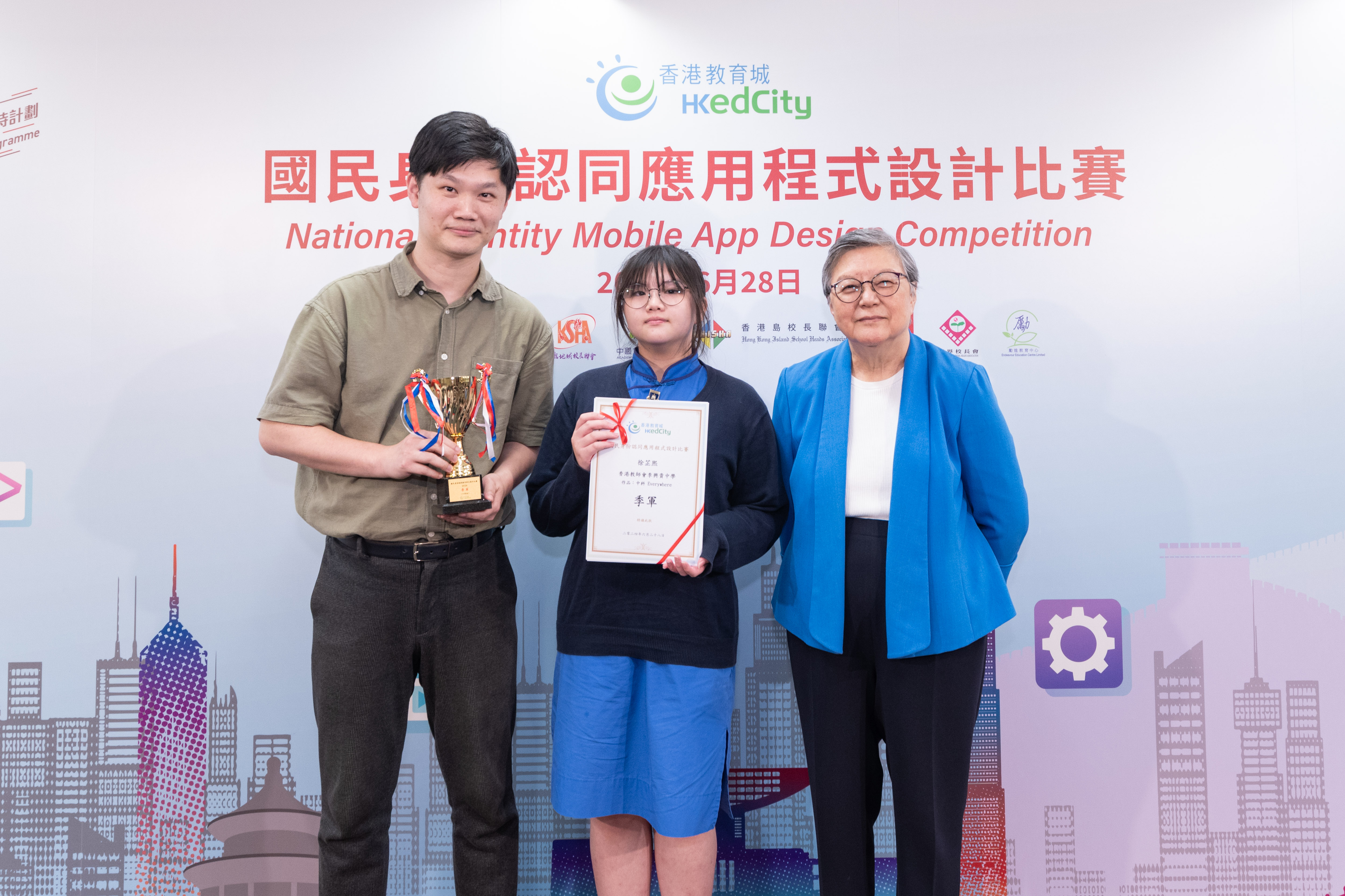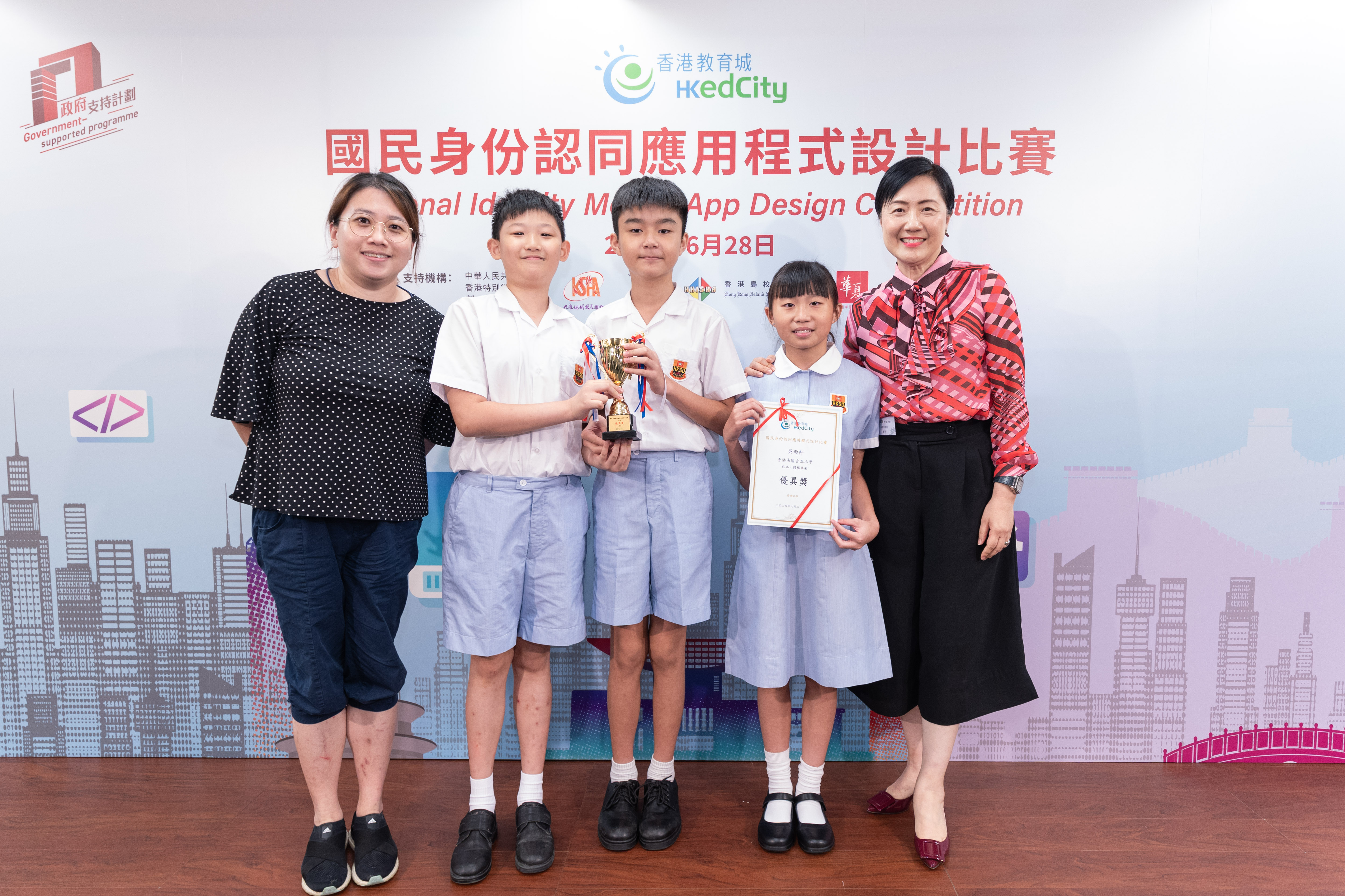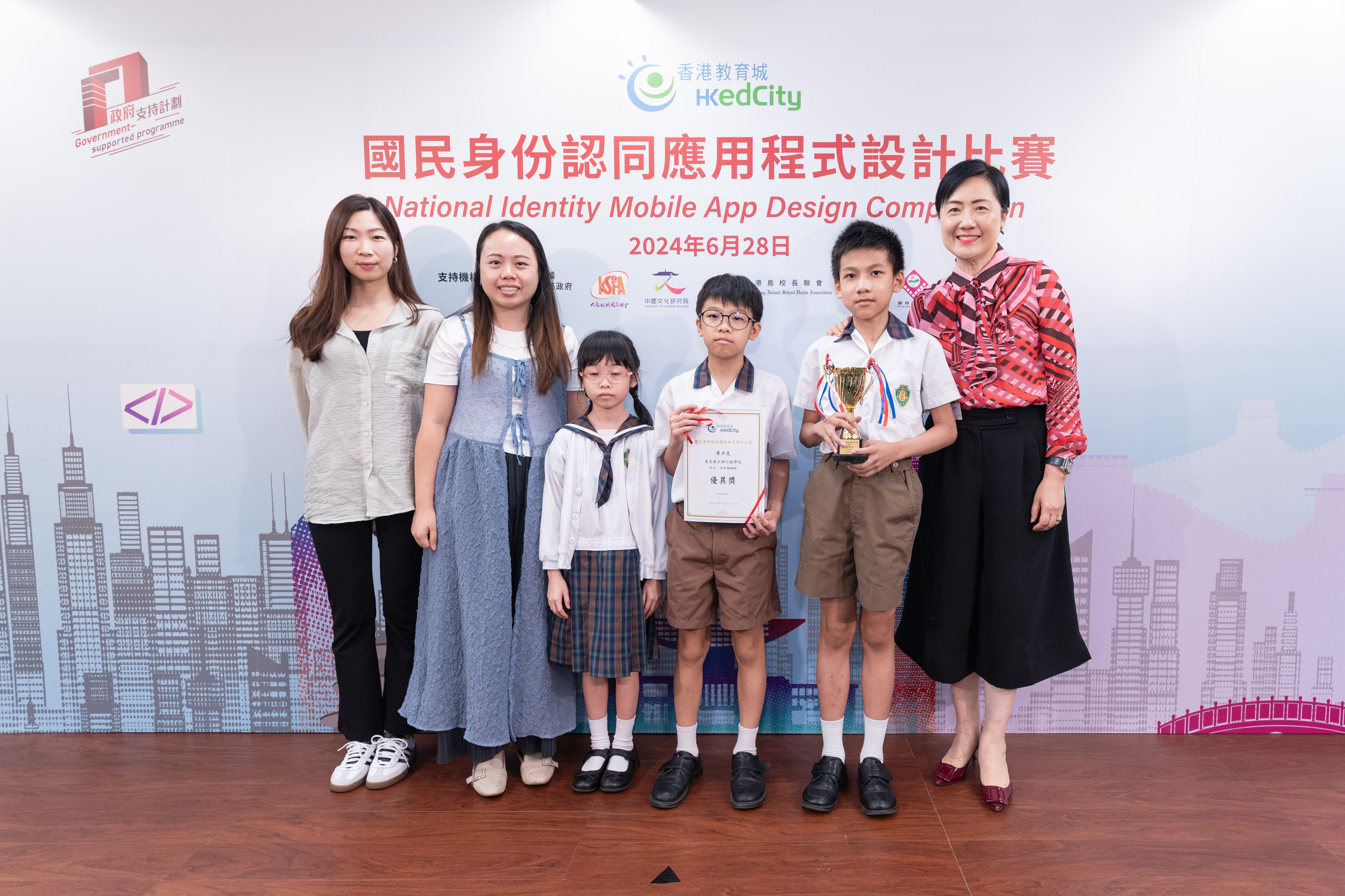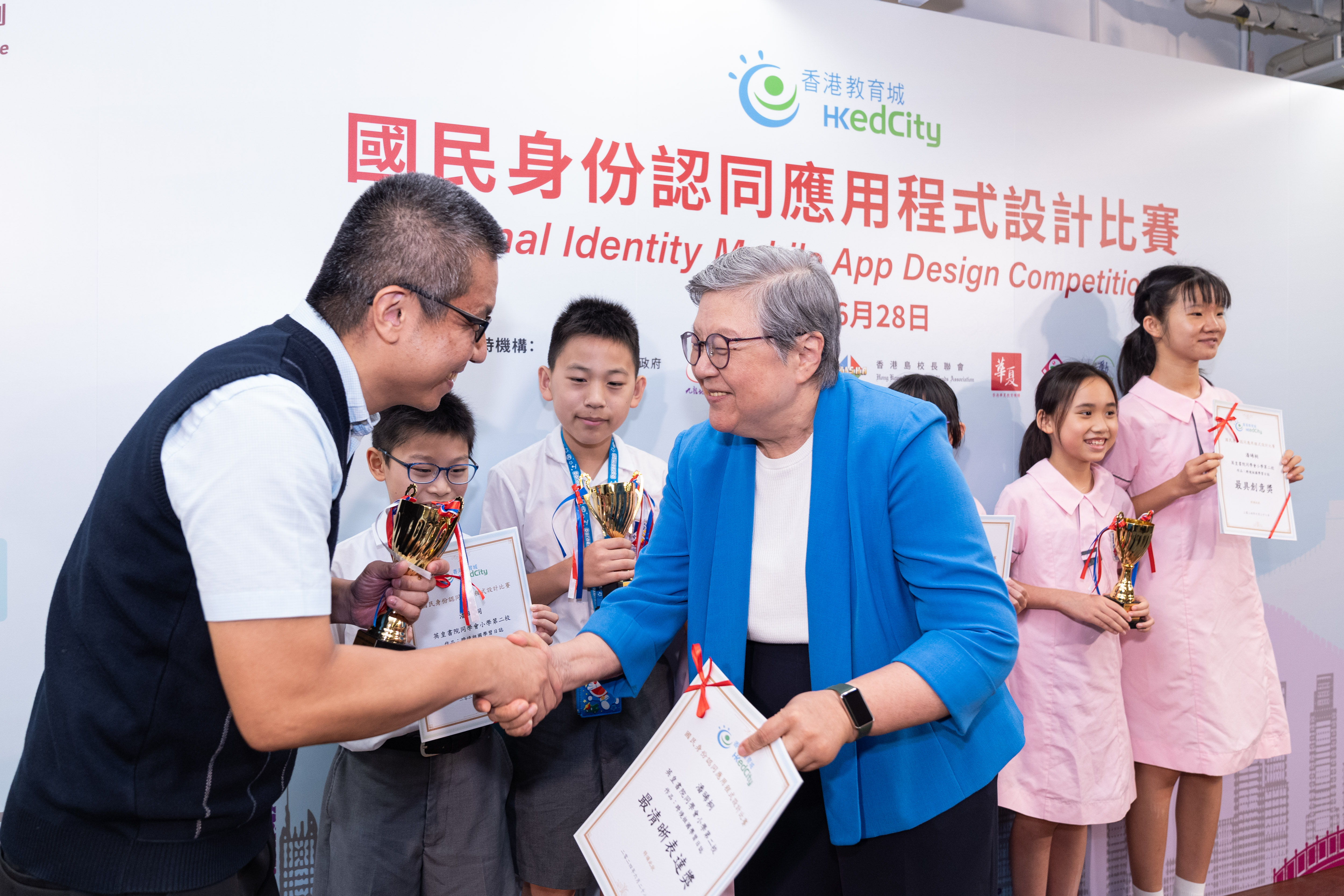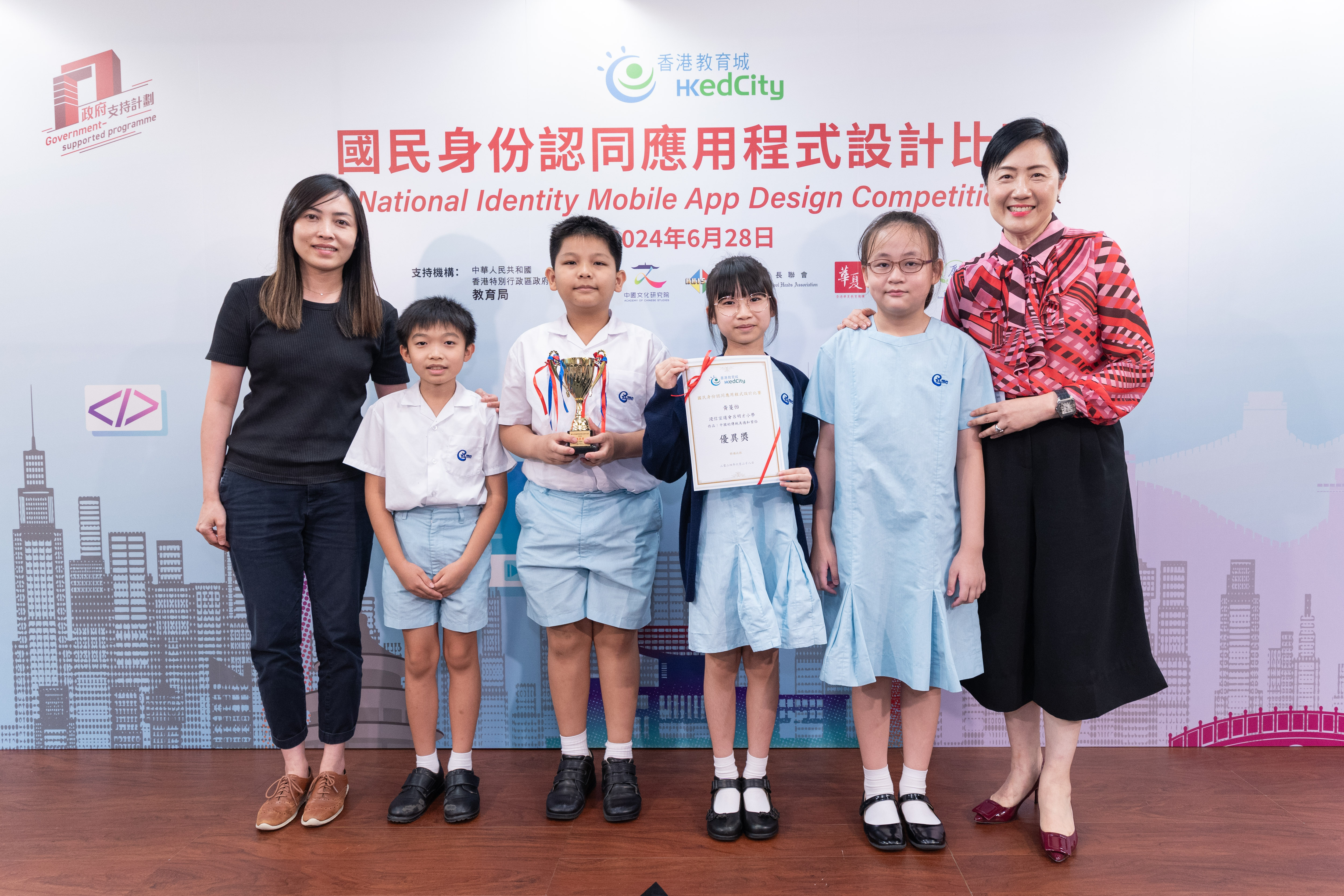 为了让学生认识国家、以国民身份自豪,香港教育城早前举办首届「国民身份认同应用程式设计比赛」,鼓励中、小学生探究创新科技,设计融入与祖国相关元素的应用程式内容,以深化对祖国历史文化和成就的认识,培养他们的国家观念、意识和提升国民身份认同;并在同侪协作过程中,建立祖国与香港一脉相承的氛围,为培养家国情怀起推动作用。范徐丽泰女士,GBM,GBS,JP 今日出席决赛颁奖典礼担任主礼嘉宾,与香港教育城董事会成员陈美娟博士,MH颁奖予得奖学生。同场展示得奖中小学生甚具创意的简报,为首届比赛划上完美句号。